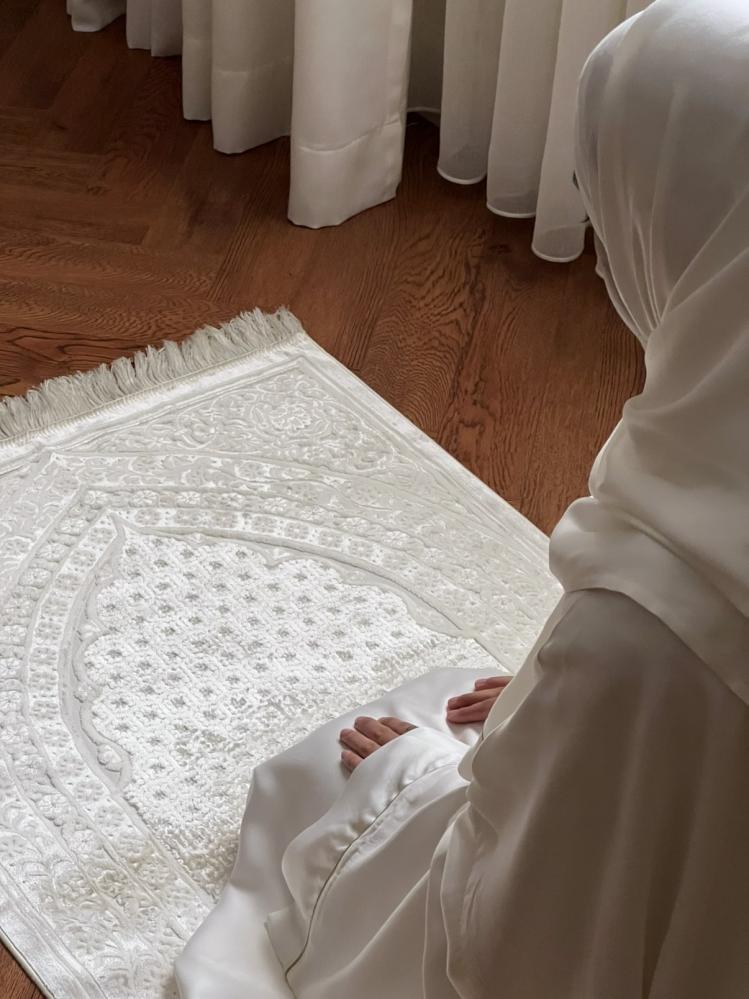 1- شرشف صلاة مميز و انيق بلون الابيض و كم واسع ومريح ,