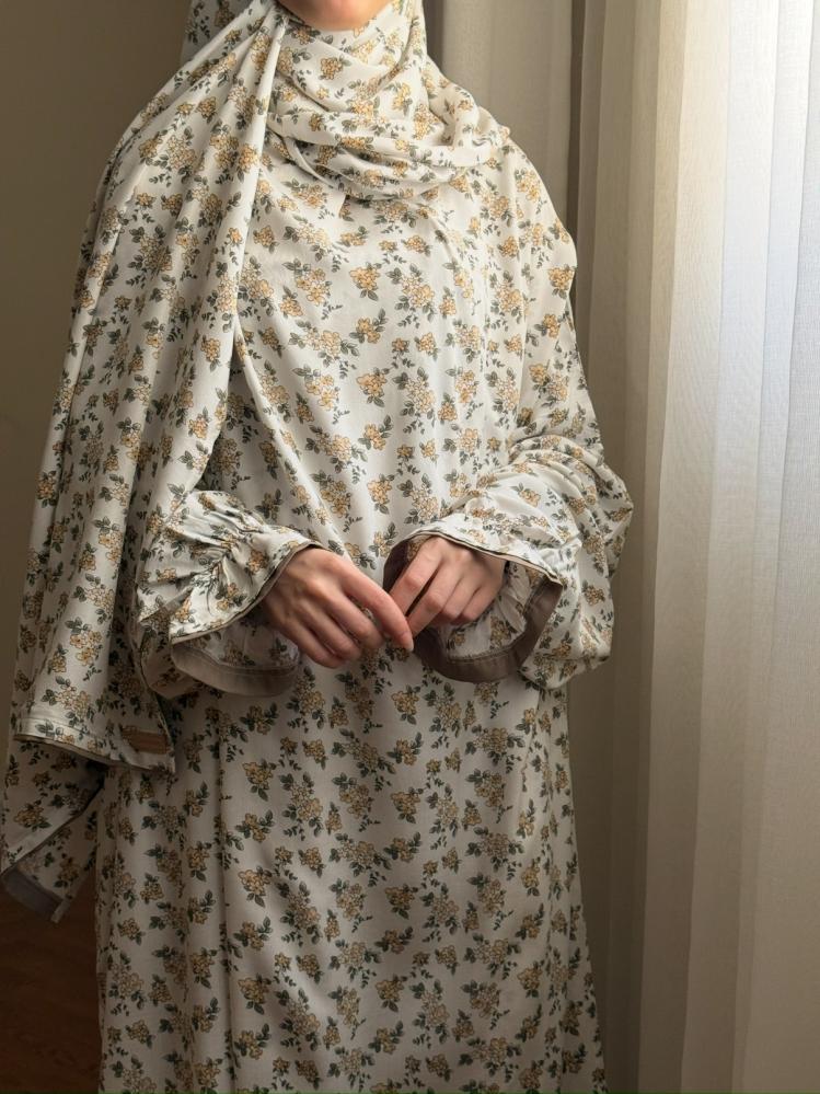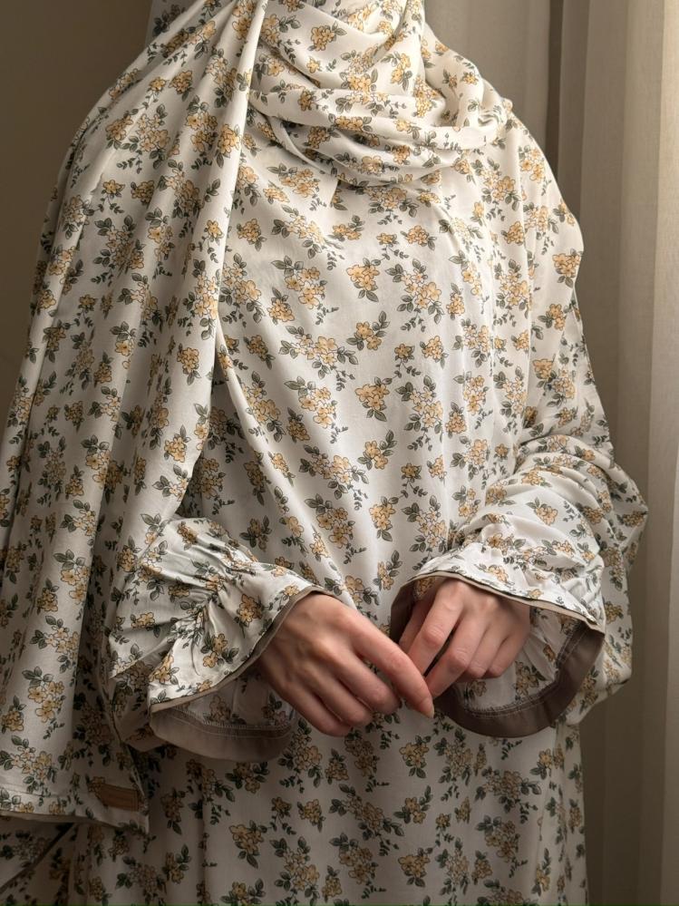 شرشف لف مفتوح من الامام مصمم بخامة ناعمة مع كم مطاط وكلوش خفيف في الكُم