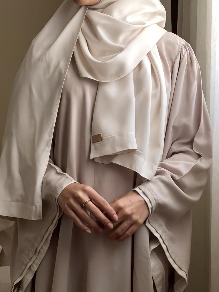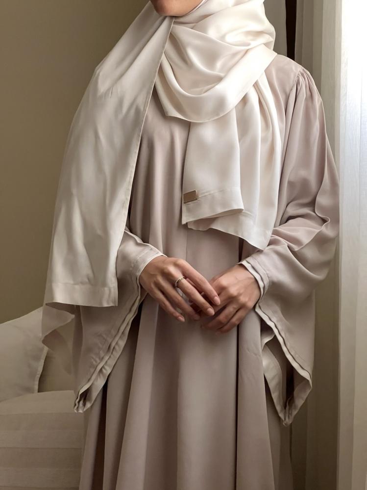 شرشف انيق قصة كلوش بطرحة متصله سكري و اكمام واسعه مع سحاب من الامام