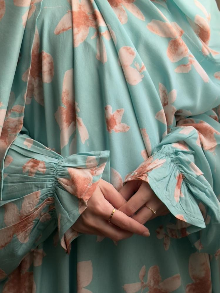 شرشف لف مفتوح من الامام مصمم بخامة ناعمة مع كم مطاط وكلوش خفيف في الكُم