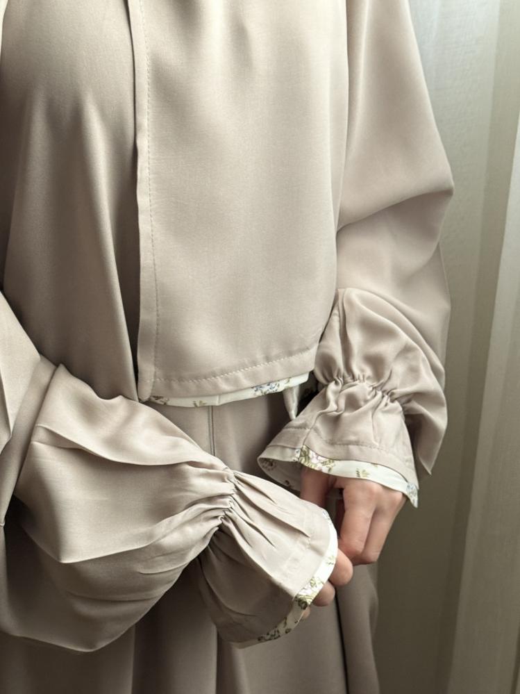 شرشف سحاب مغلق من الامام مصمم بخامة ناعمة مع كم مطاط وكلوش خفيف في الكُم