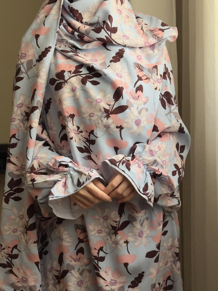 شرشف لف مفتوح من الامام مصمم بخامة ناعمة مع كم مطاط وكلوش خفيف في الكُم