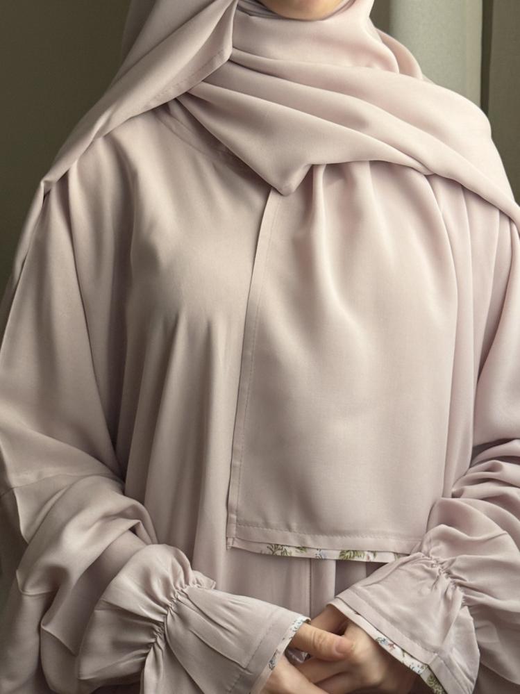 شرشف سحاب مغلق من الامام مصمم بخامة ناعمة مع كم مطاط وكلوش خفيف في الكُم