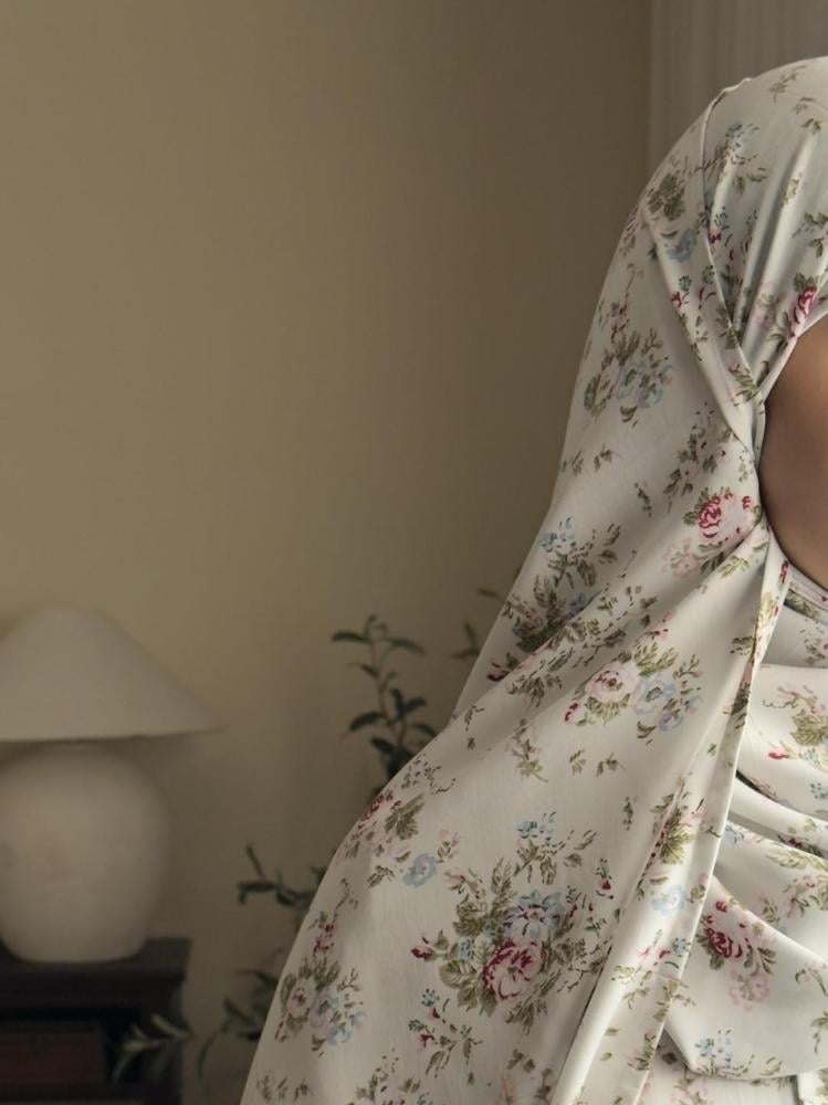 شرشف لف مفتوح من الامام مصمم بخامة ناعمة مع كم مطاط وكلوش خفيف في الكُم