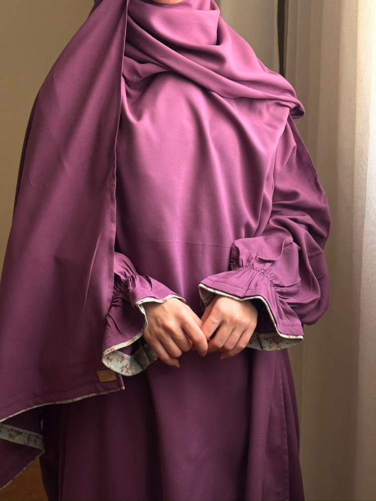 شرشف لف مفتوح من الامام مصمم بخامة ناعمة مع كم مطاط وكلوش خفيف في الكُم
